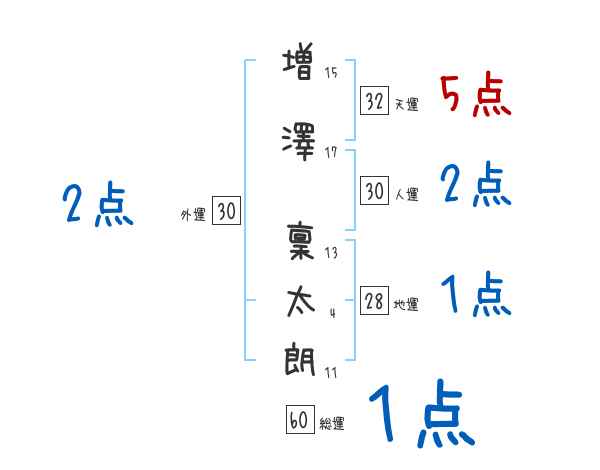 天運![]() | 増澤稟太朗さんの天運は32画の5つ星!柔軟性があり成功する。チャンスが多く金運が良い。 家系が持つ宿命的な運勢を表します。祖先から受け継いだ苗字ですので自分の力が及びません。家柄を象徴します。 |