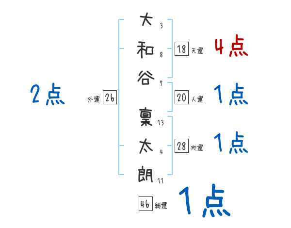 天運![]() | 大和谷稟太朗さんの天運は18画の4つ星!情熱的で剛気。忍耐力があり信頼される。 家系が持つ宿命的な運勢を表します。祖先から受け継いだ苗字ですので自分の力が及びません。家柄を象徴します。 |