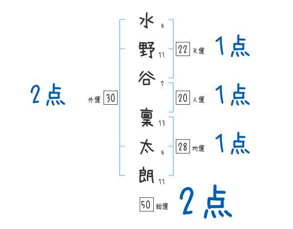 総運![]() | 水野谷稟太朗さんの総運は50画の2つ星!浮き沈みが激しく不安定。しりすぼみに衰退しやすいので注意しましょう。 あなたの人生を表す1番重要な運勢です。生涯を通じて影響する総合運となり、主に50歳以降の晩年期に影響を及ぼします。 |