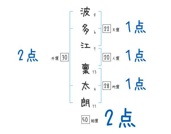 外運![]() | 波多江稟太朗さんの外運は30画の2つ星!浮き沈みの激しさに注意しましょう。 生活面を象徴する運勢です。外部から受ける影響力を表し、結婚運、家庭運や職場、環境への順応性を表します。 |