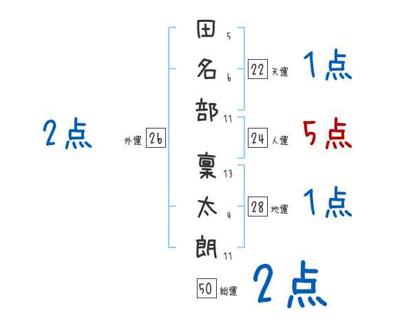 総運![]() | 田名部稟太朗さんの総運は50画の2つ星!浮き沈みが激しく不安定。しりすぼみに衰退しやすいので注意しましょう。 あなたの人生を表す1番重要な運勢です。生涯を通じて影響する総合運となり、主に50歳以降の晩年期に影響を及ぼします。 |