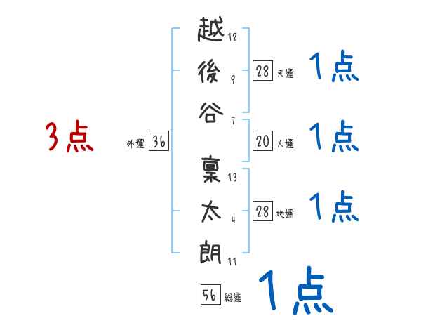 越後谷稟太朗さんの画数の鑑定結果