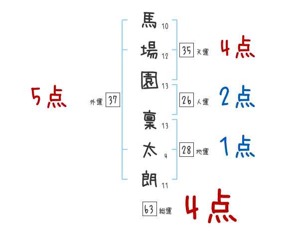 外運![]() | 馬場園稟太朗さんの外運は37画の5つ星!努力家で順応性に優れる。現実的な考え方ができ忠実に物事をこなす。 生活面を象徴する運勢です。外部から受ける影響力を表し、結婚運、家庭運や職場、環境への順応性を表します。 |
