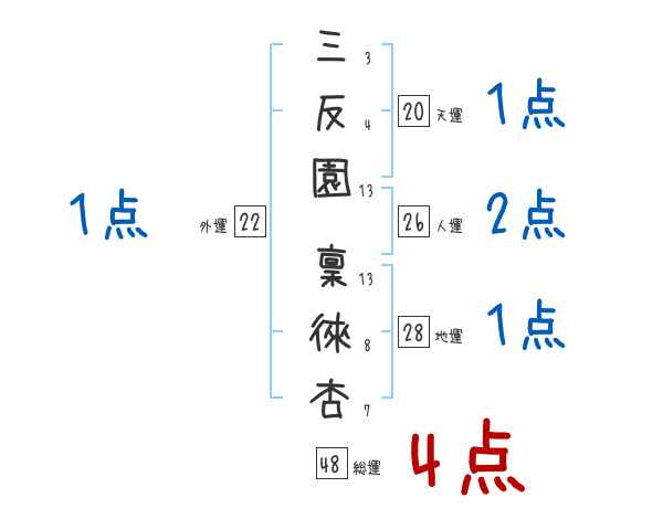 三反園稟徠杏さんの画数の鑑定結果