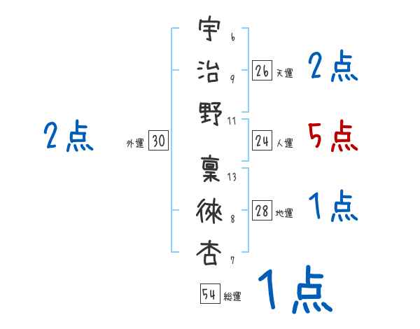 宇治野稟徠杏さんの画数の鑑定結果