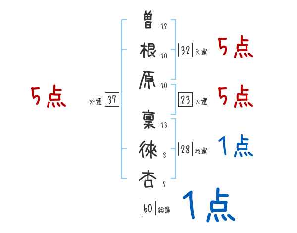 天運![]() | 曽根原稟徠杏さんの天運は32画の5つ星!柔軟性があり成功する。チャンスが多く金運が良い。 家系が持つ宿命的な運勢を表します。祖先から受け継いだ苗字ですので自分の力が及びません。家柄を象徴します。 |