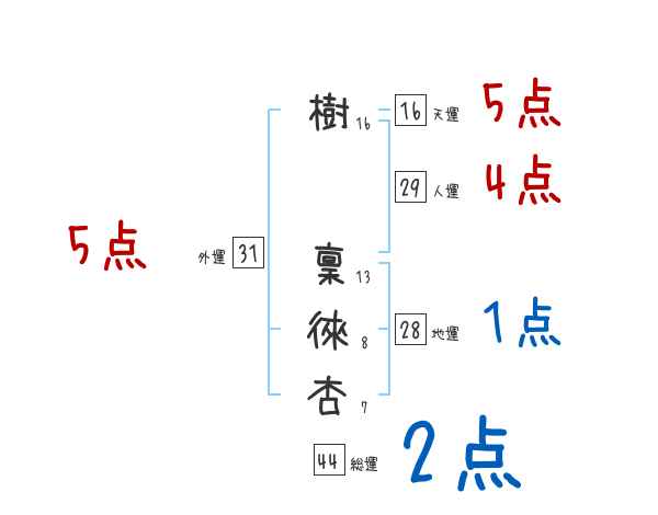 樹稟徠杏さんの画数の鑑定結果