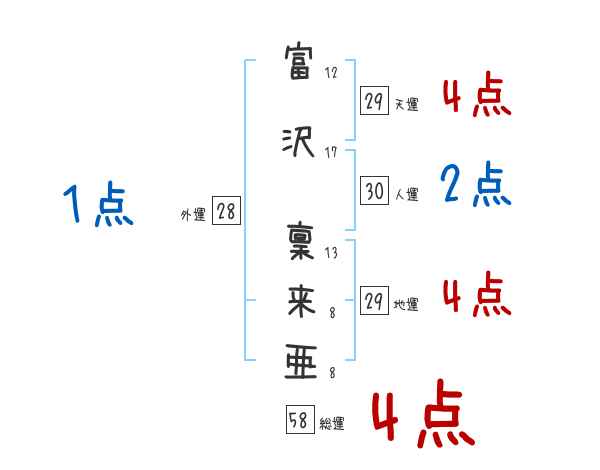 富沢稟来亜さんの画数の鑑定結果
