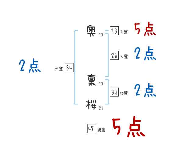 奥稟桜さんの画数の鑑定結果