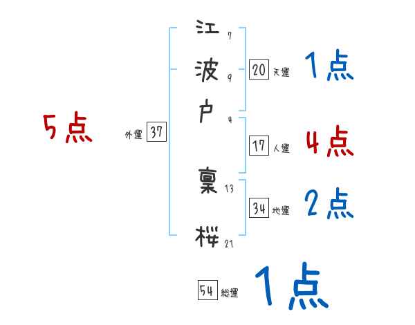外運![]() | 江波戸稟桜さんの外運は37画の5つ星!努力家で順応性に優れる。現実的な考え方ができ忠実に物事をこなす。 生活面を象徴する運勢です。外部から受ける影響力を表し、結婚運、家庭運や職場、環境への順応性を表します。 |