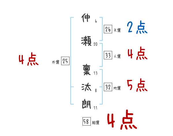 仲瀬稟汰朗さんの画数の鑑定結果