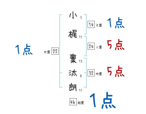小梶稟汰朗さんの画数の鑑定結果