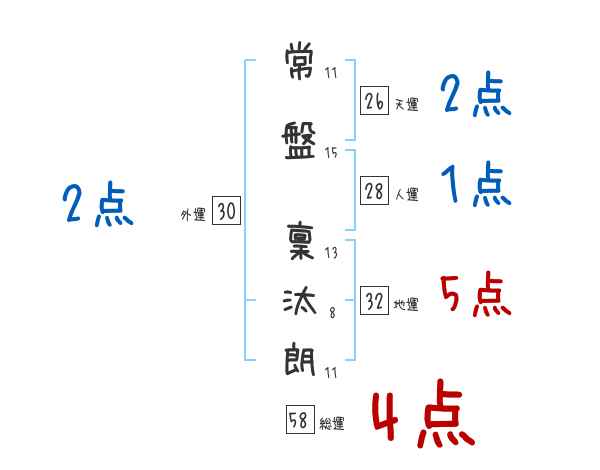 | 天運  | 常盤稟汰朗さんの天運は26画の2つ星!波瀾万丈かも。信頼できる人を大事にしましょう。家系が持つ宿命的な運勢を表します。祖先から受け継いだ苗字ですので自分の力が及びません。家柄を象徴します。 |