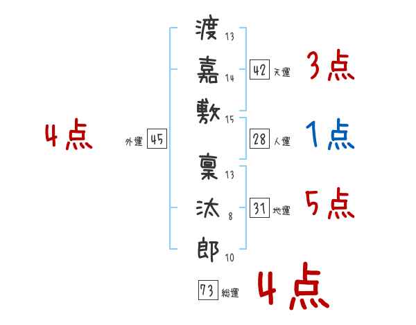 渡嘉敷稟汰郎さんの画数の鑑定結果