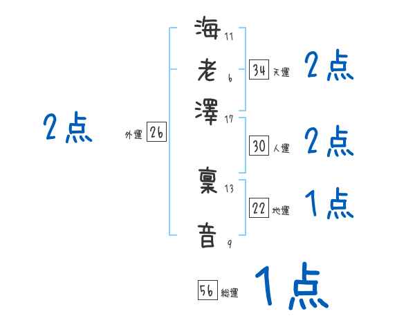 外運![]() | 海老澤稟音さんの外運は26画の2つ星!波瀾万丈かも。信頼できる人を大事にしましょう。 生活面を象徴する運勢です。外部から受ける影響力を表し、結婚運、家庭運や職場、環境への順応性を表します。 |