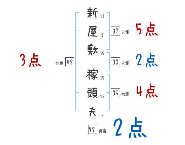 新屋敷稼頭夫さんの総運は72画の2つ星
