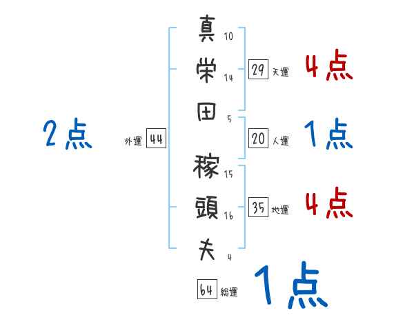 真栄田稼頭夫さんの画数の鑑定結果