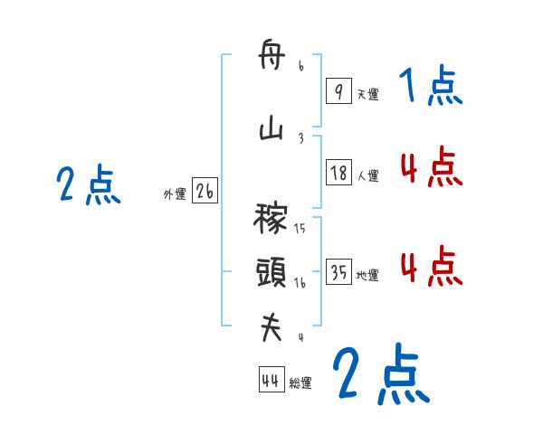 舟山稼頭夫さんの画数の鑑定結果