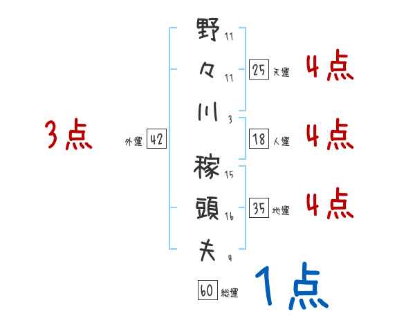 野々川稼頭夫さんの画数の鑑定結果