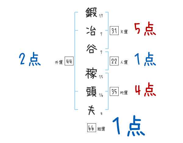 鍛冶谷稼頭夫さんの画数の鑑定結果
