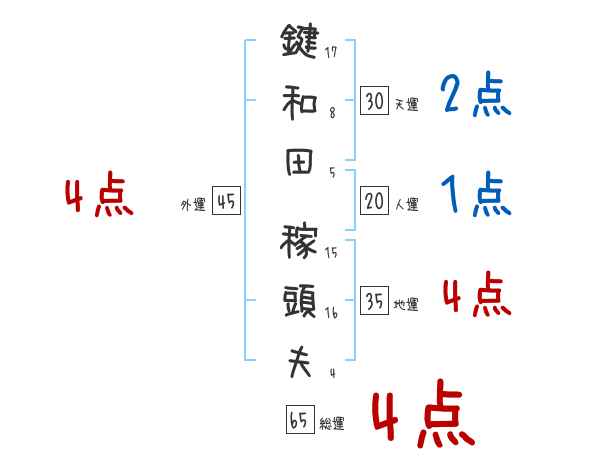 鍵和田稼頭夫さんの画数の鑑定結果