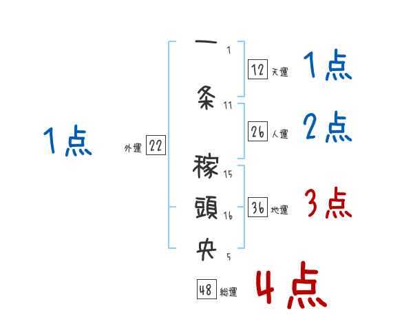 一条稼頭央さんの画数の鑑定結果