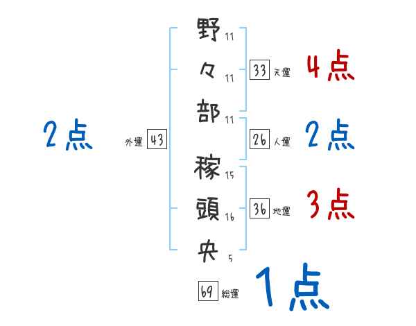 野々部稼頭央さんの画数の鑑定結果