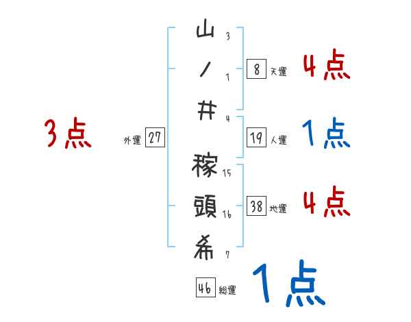 家系が持つ宿命的な運勢を表します。祖先から受け継いだ苗字ですので自分の力が及びません。家柄を象徴します。