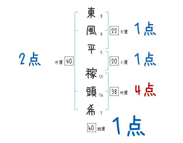 東風平稼頭希さんの外運は40画の2つ星