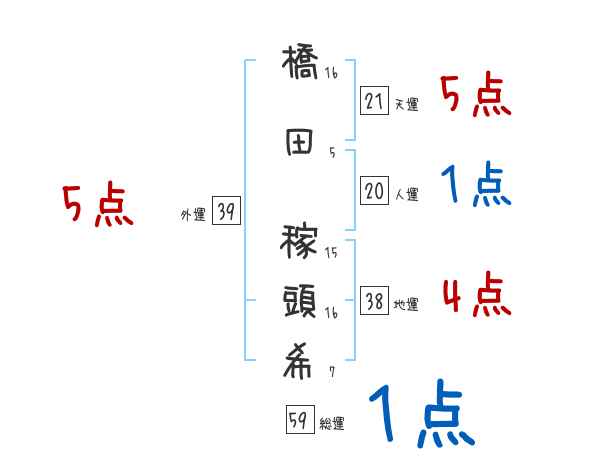 橋田稼頭希さんの画数の鑑定結果