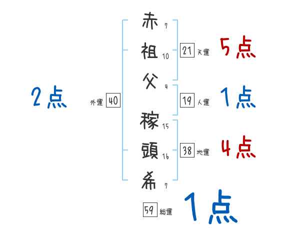 赤祖父稼頭希さんの画数の鑑定結果