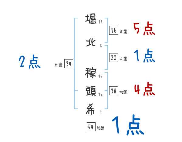 堀北稼頭希さんの画数の鑑定結果