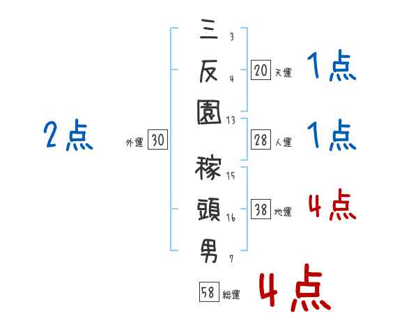 三反園稼頭男さんの画数の鑑定結果
