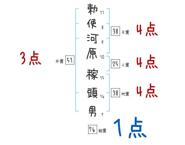 勅使河原稼頭男さんの画数の鑑定結果
