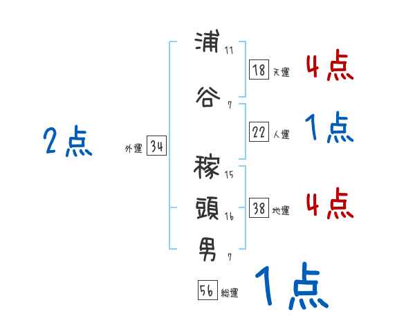 浦谷稼頭男さんの画数の鑑定結果