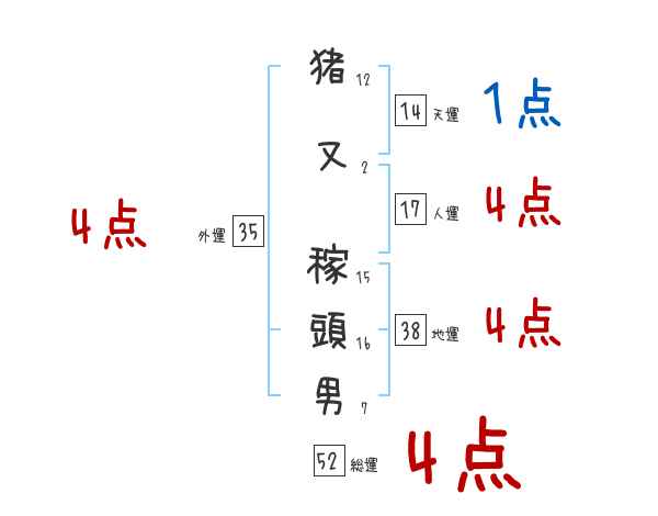猪又稼頭男さんの画数の鑑定結果