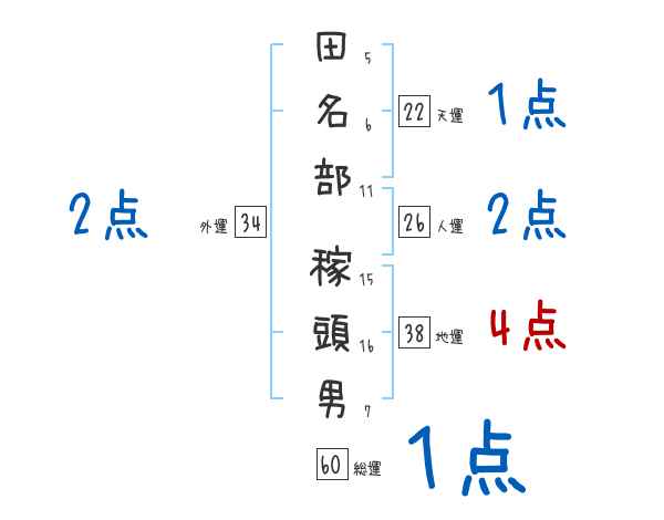 田名部稼頭男さんの画数の鑑定結果