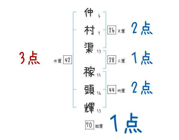仲村渠稼頭輝さんの天運は26画の2つ星