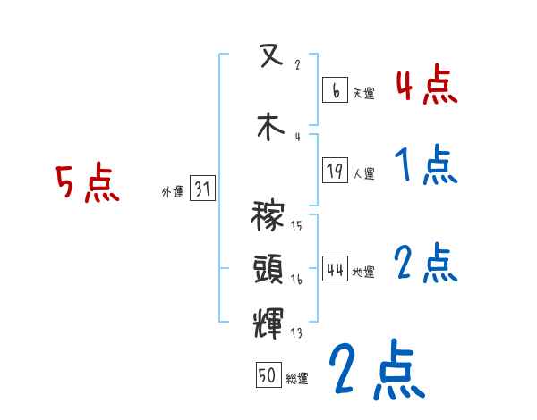 又木稼頭輝さんの画数の鑑定結果