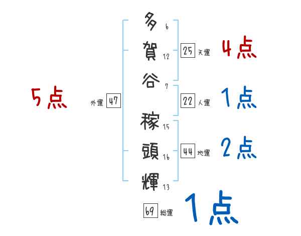 多賀谷稼頭輝さんの天運は25画の4つ星