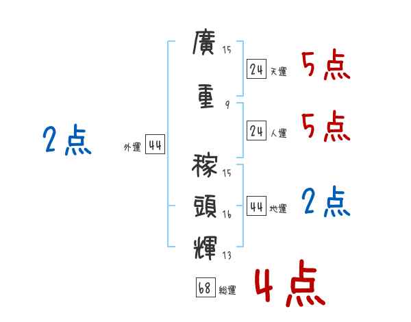 廣重稼頭輝さんの画数の鑑定結果