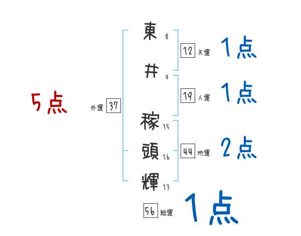 外運![]() | 東井稼頭輝さんの外運は37画の5つ星!努力家で順応性に優れる。現実的な考え方ができ忠実に物事をこなす。 生活面を象徴する運勢です。外部から受ける影響力を表し、結婚運、家庭運や職場、環境への順応性を表します。 |