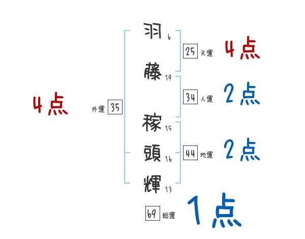 羽藤稼頭輝さんの画数の鑑定結果