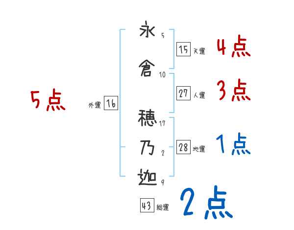 天運![]() | 永倉穂乃迦さんの天運は15画の4つ星!人徳があり出世する。順調に物事を進め円満な人生。 家系が持つ宿命的な運勢を表します。祖先から受け継いだ苗字ですので自分の力が及びません。家柄を象徴します。 |