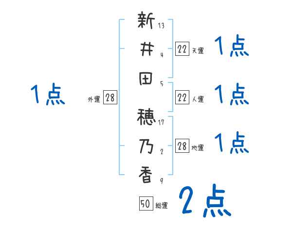 新井田穂乃香さんの画数の鑑定結果