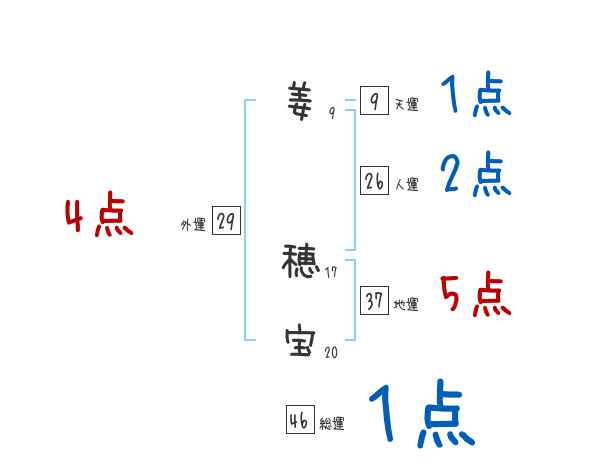 外運![]() | 姜穂宝さんの外運は29画の4つ星!完全主義で才能がある。厳格な心の持ち主。 生活面を象徴する運勢です。外部から受ける影響力を表し、結婚運、家庭運や職場、環境への順応性を表します。 |