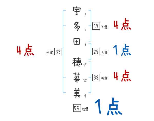 宇多田穂菜美さんの画数の鑑定結果