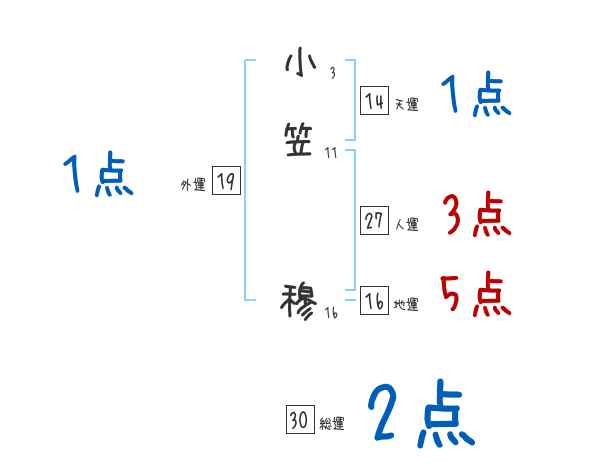 小笠穆さんの外運は19画の1つ星