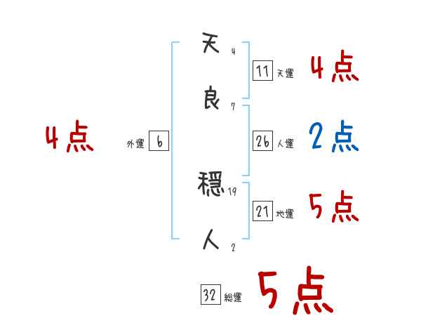 天良穏人さんの画数の鑑定結果