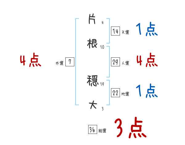 片根穏大さんの画数の鑑定結果